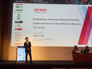 日本からはデンソー加藤氏が、自動車の精密解体ロボットプロジェクトBlue Rebirthの紹介を行った。2024年に日本政府の支援により発足した同プロジェクトは、AIを駆使した自動車解体の高度なオートメーション化を目指す。質の高いリサイクルには手解体が必要なのは目下の常識だが、手解体と同レベルの精密な作業を、手解体に必要な動きおよび作業員の思考をロボットに学習させることによって実現する。オートメーションプロセスには、解体から破砕・材料回収まで含まれ、顧客のニーズに沿ってラインは「モジュール式」で対応可能。同ソリューションは、国内での商業化は2028年、海外では2030年を見込んでいる。自動車リサイクルにおけるのロボット化の必要性は、ここ欧州でもかねてより議論されており、特にEV時代の到来に際し、必然的であると考えられている。一方で、非常に複雑な過程もある解体を一貫してオートメーション化するには様々な課題がる。デンソーのプロジェクトはこれを一挙に解決しようというもので、商業化が進めば、自動車リサイクルへの大きな貢献となるのではないか。